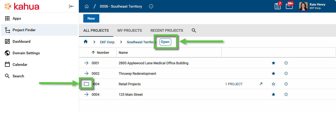 indicating that a project has sub-projects has been updated to match the styling of the rest of our UI. - An "Open" button